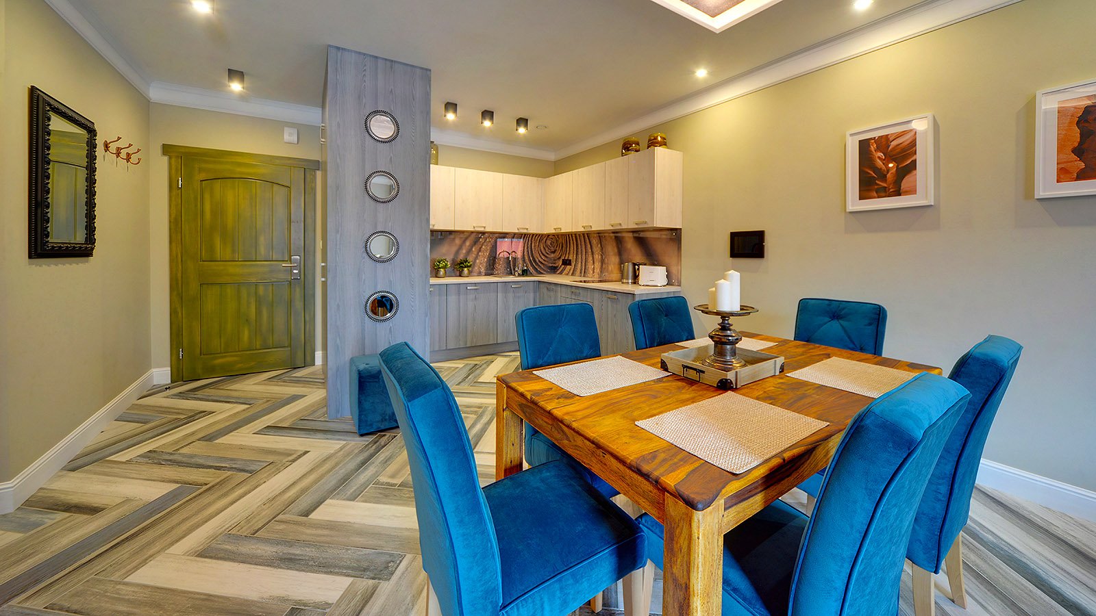 Eine sehr charakteristische, rote und wunderschöne Villa, deren Patron ein Fischer – Seemann ist. Ein geschultes Auge wird in ihren Fluren Hinweise auf die faszinierenden Abenteuer der tapferen Wikinger entdecken, die sich immer wieder mit dem Element Wasser auseinandersetzen mussten. Im Inneren befinden sich stilvolle Laternen, die den Bewohnern die Nummern ihrer Apartments anzeigen.