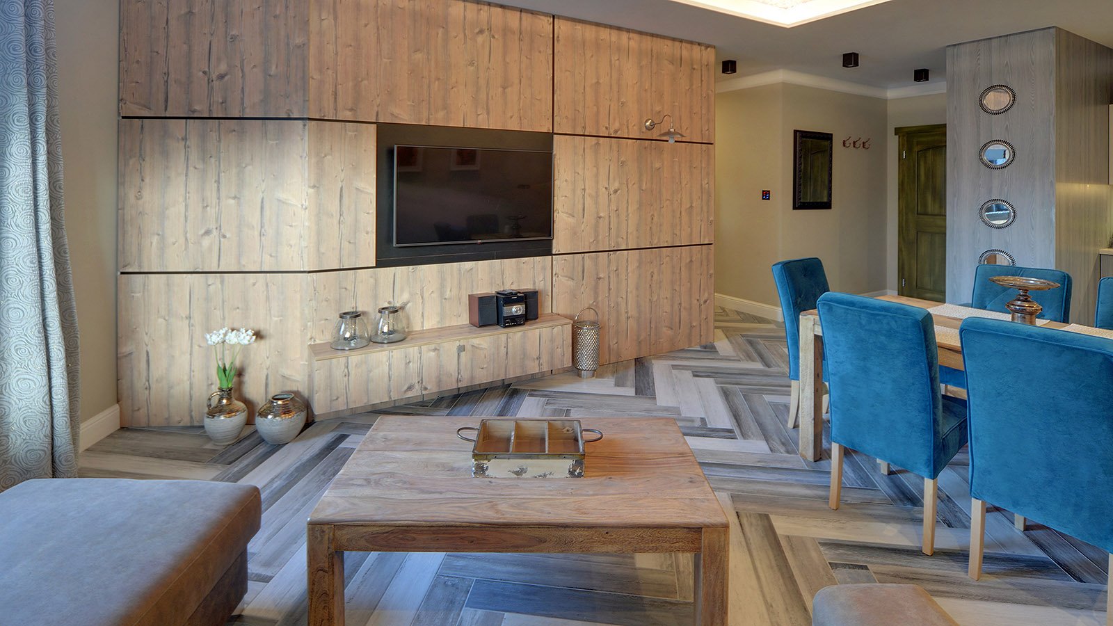 - Wellnessbereich – mit Jacuzzi, drei Saunen, Kneipp-Pfad, Eisfall und vielen weiteren Attraktionen.